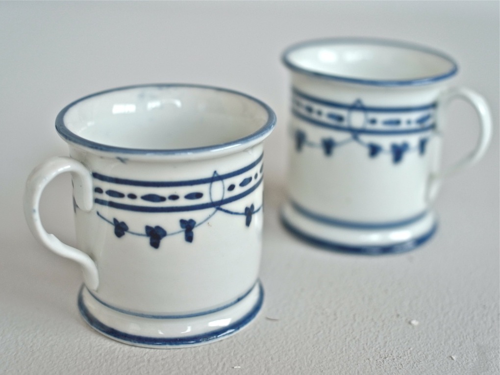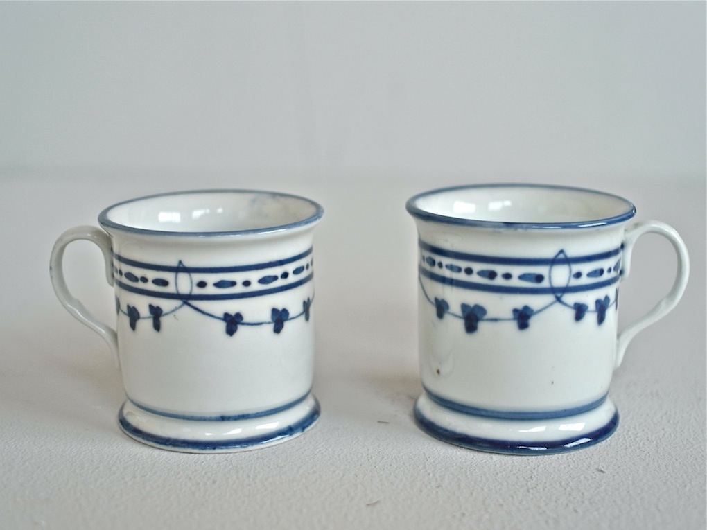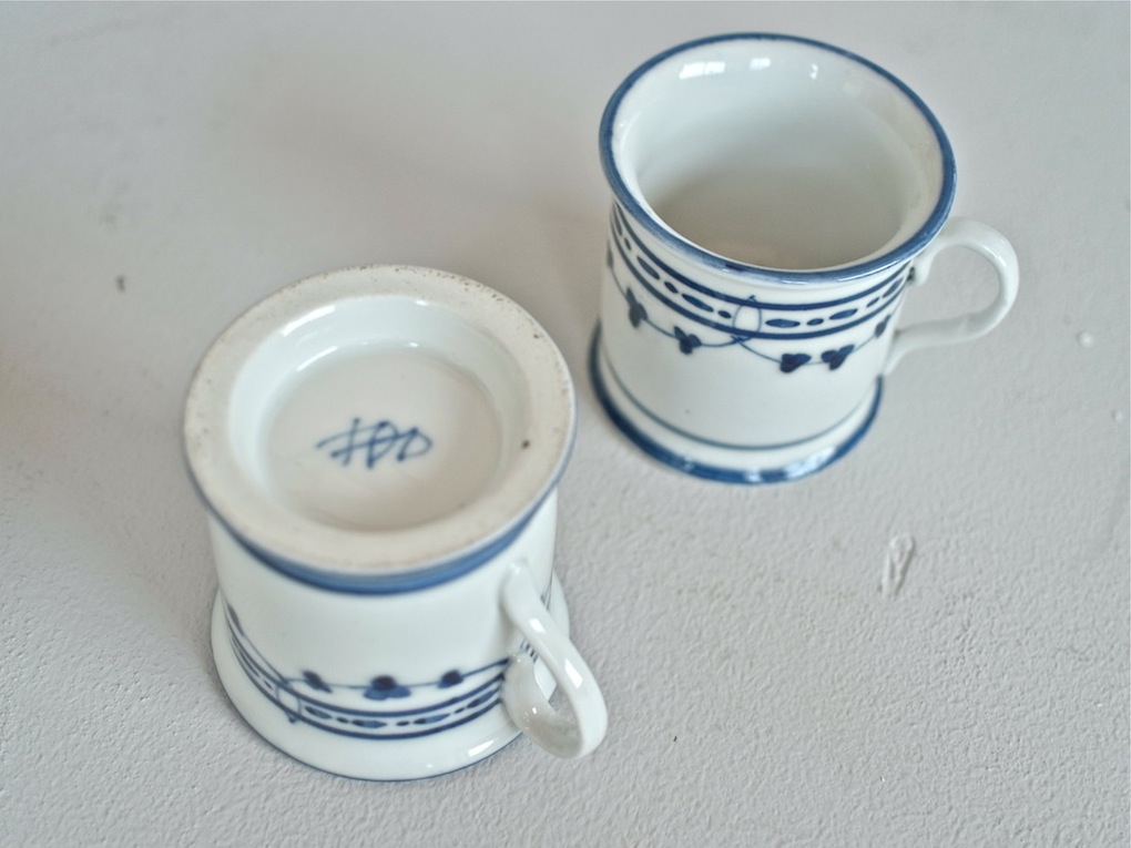 イギリスで出逢った磁器のマグカップ。優しくブルーで描かれた手描きの蔦の柄。大きめのサイズが珍しく使いやすいと思います。時代は1970年代くらいでしょうか、傷や欠けがなく綺麗な状態です。底裏におそらく絵付師のサインが入っています。
