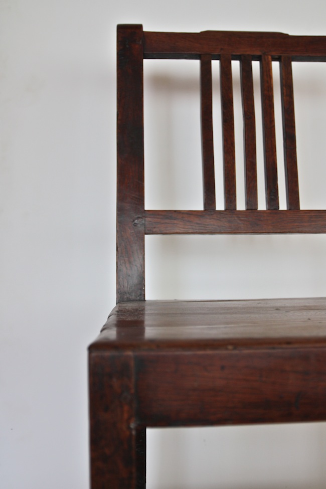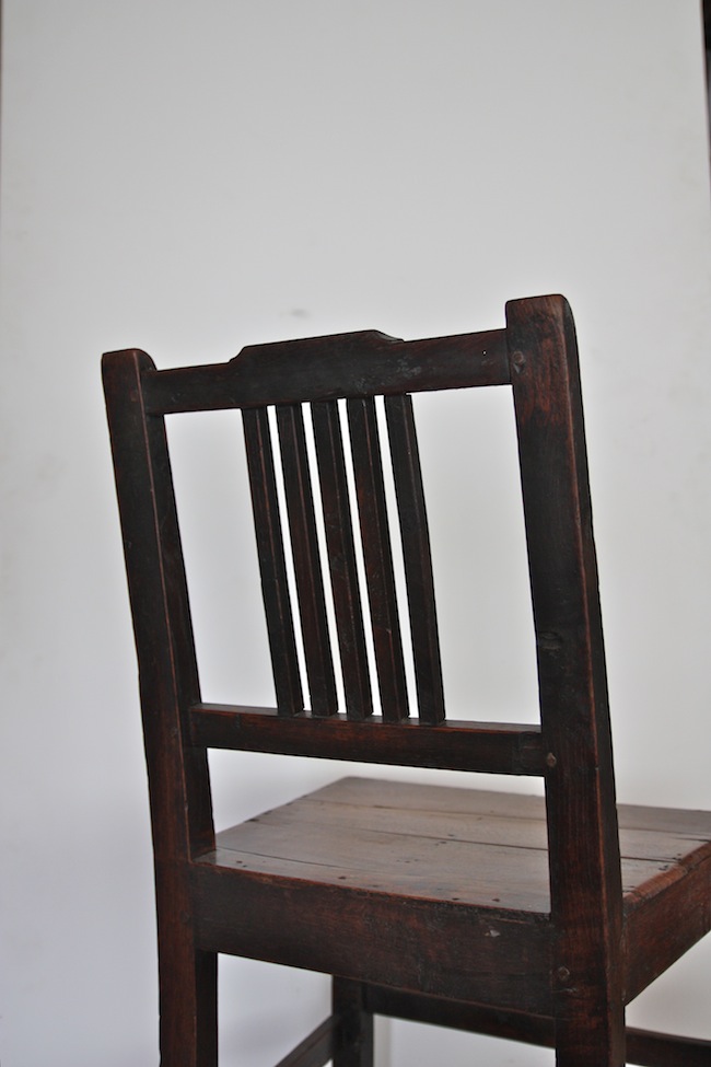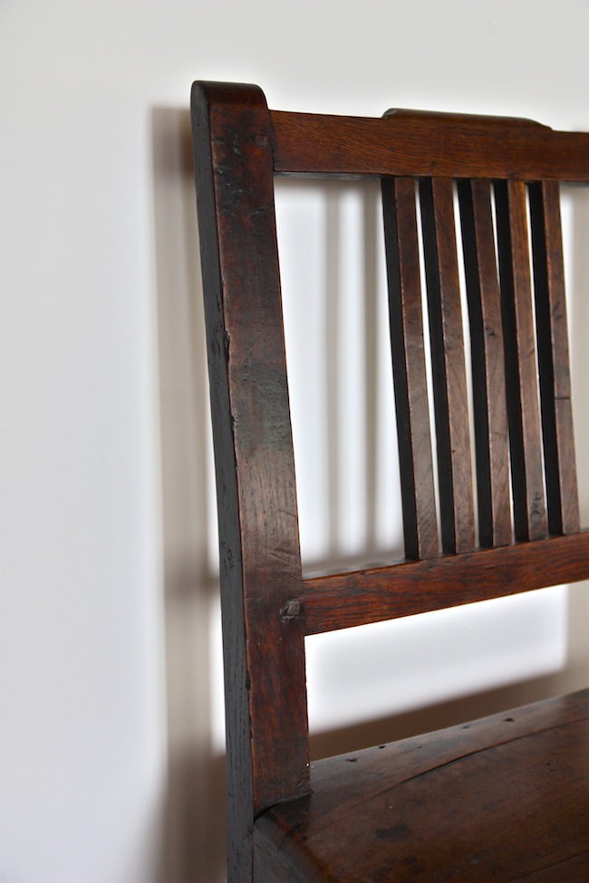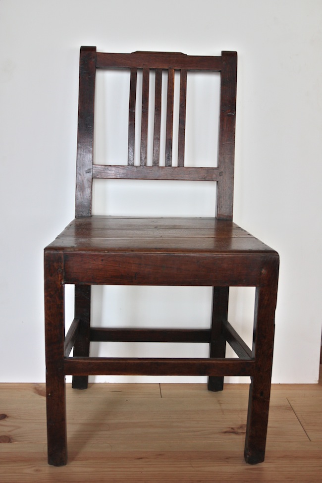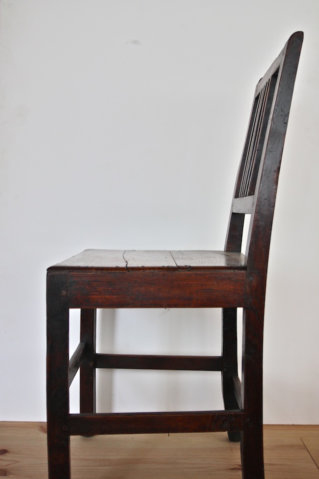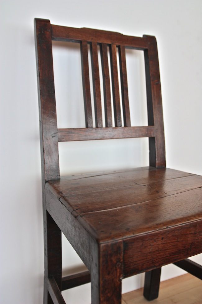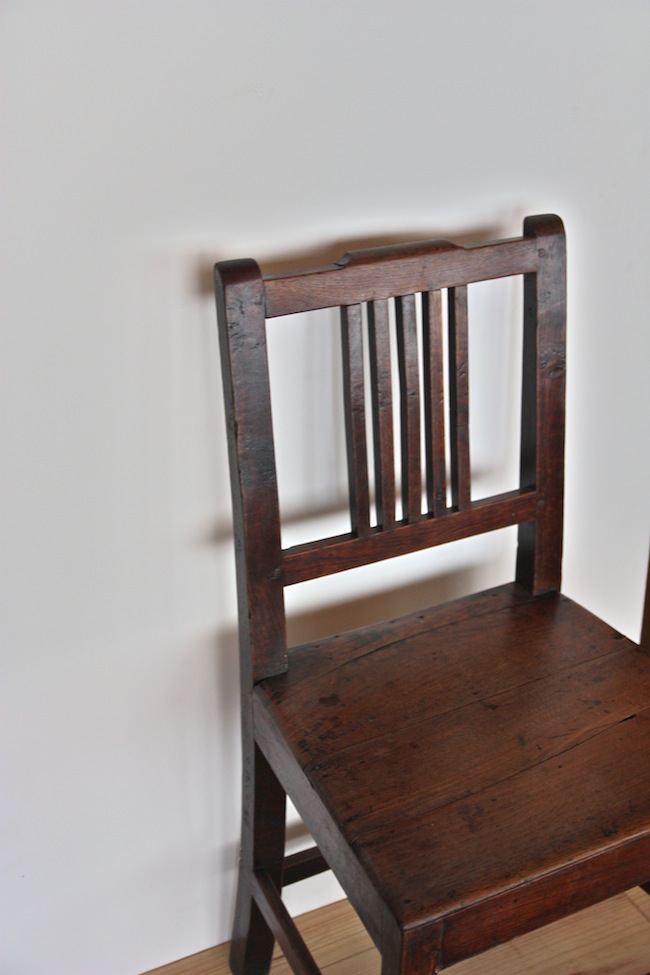 通常、数種類の木材を組み合わせて作られることが多いカントリーチェアですが、この椅子はすべて良質のオーク材で組まれています。イギリス東部のものだと思われます。部分的な修復痕があるものの、組み直し等の大掛かりなレストレーションが施された形跡はなく、ジョイントにはオリジナルと思われる角ペグが残されています。
