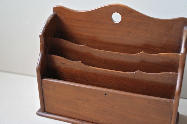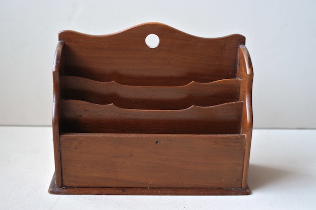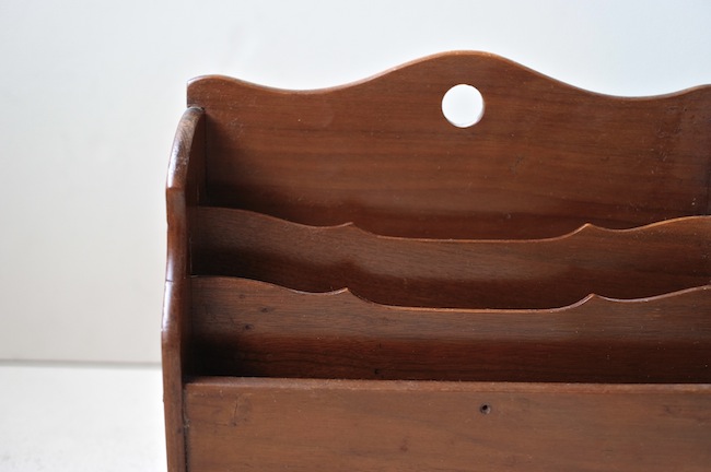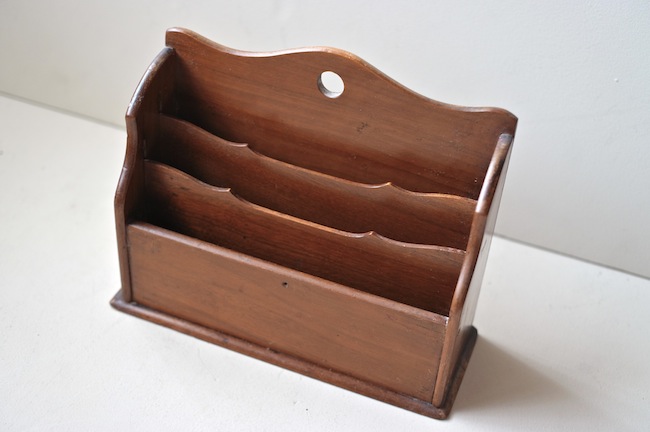 ポストカードや封筒などを整理していたレターラック。バーチ材でヒビが一カ所入っていましたが、綺麗に修復してあります。1930年代、イギリス。