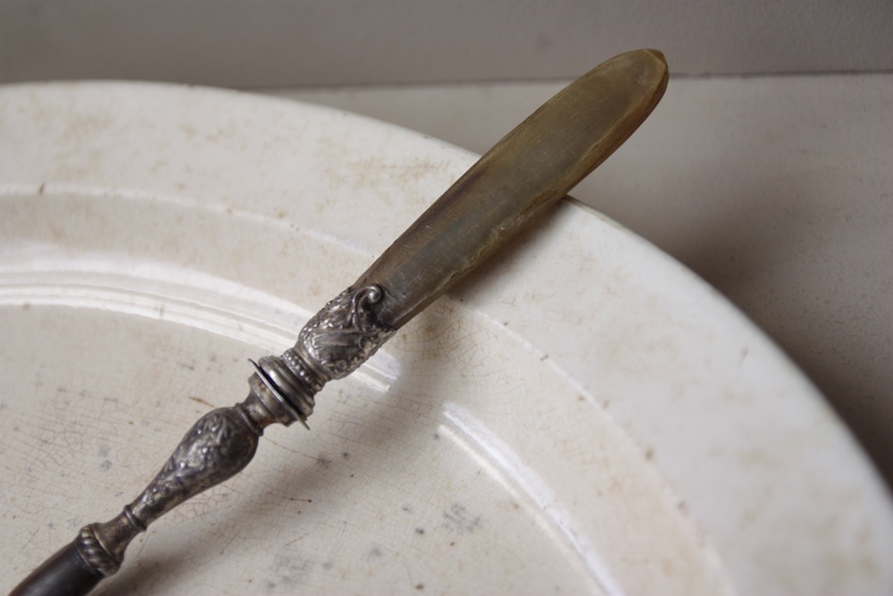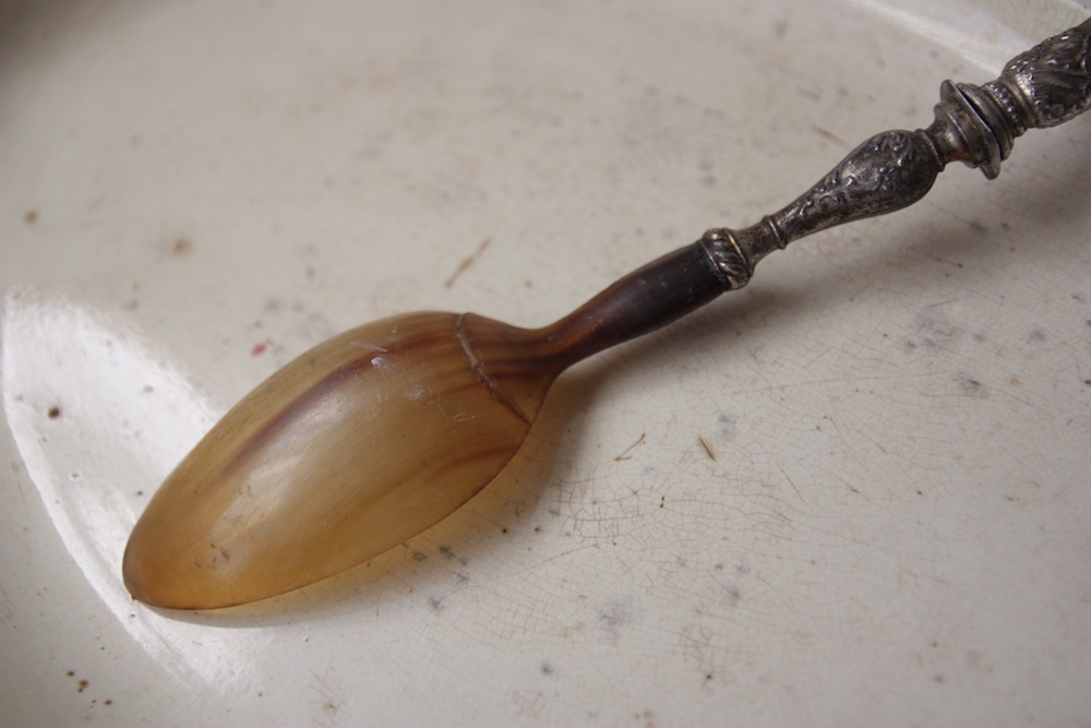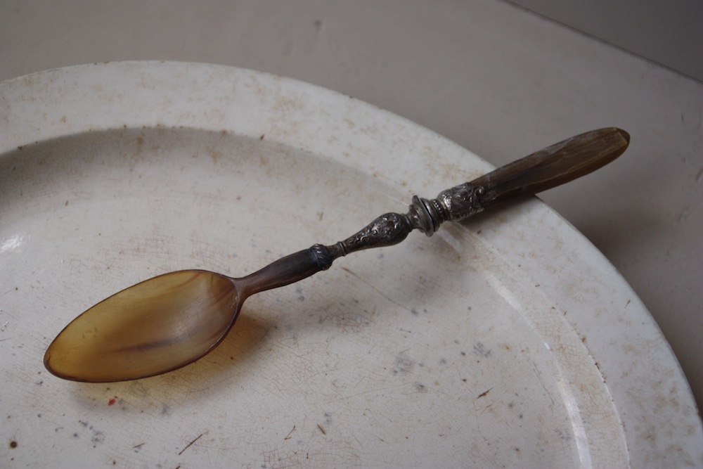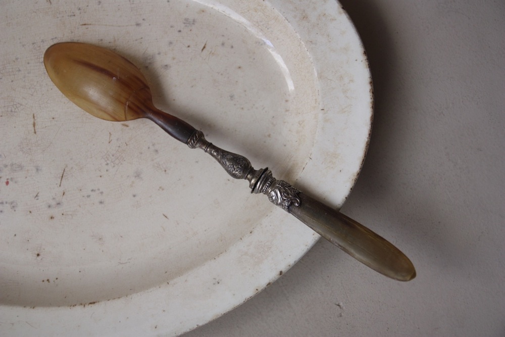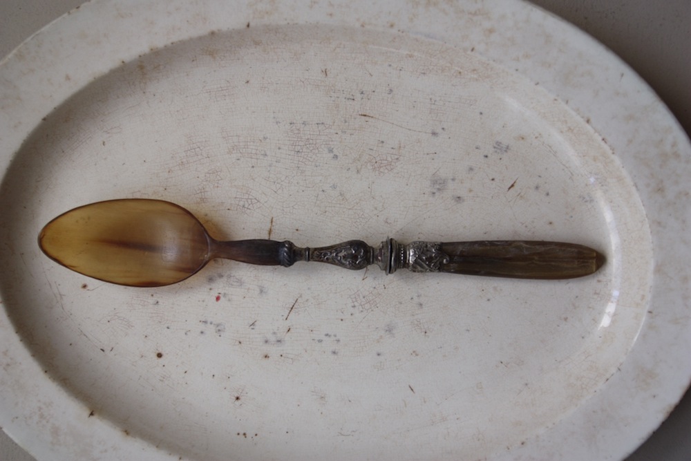 ベークライトのサービングスプーンです。使用上に問題ありませんが、柄の部分にヒビ、錆などがありますので、画像でご確認ください。