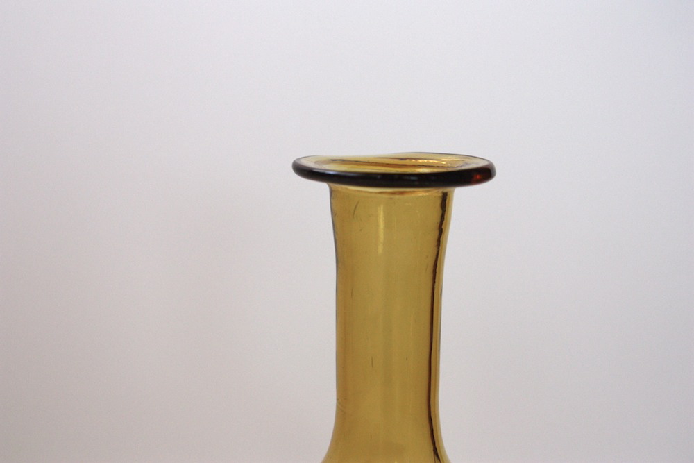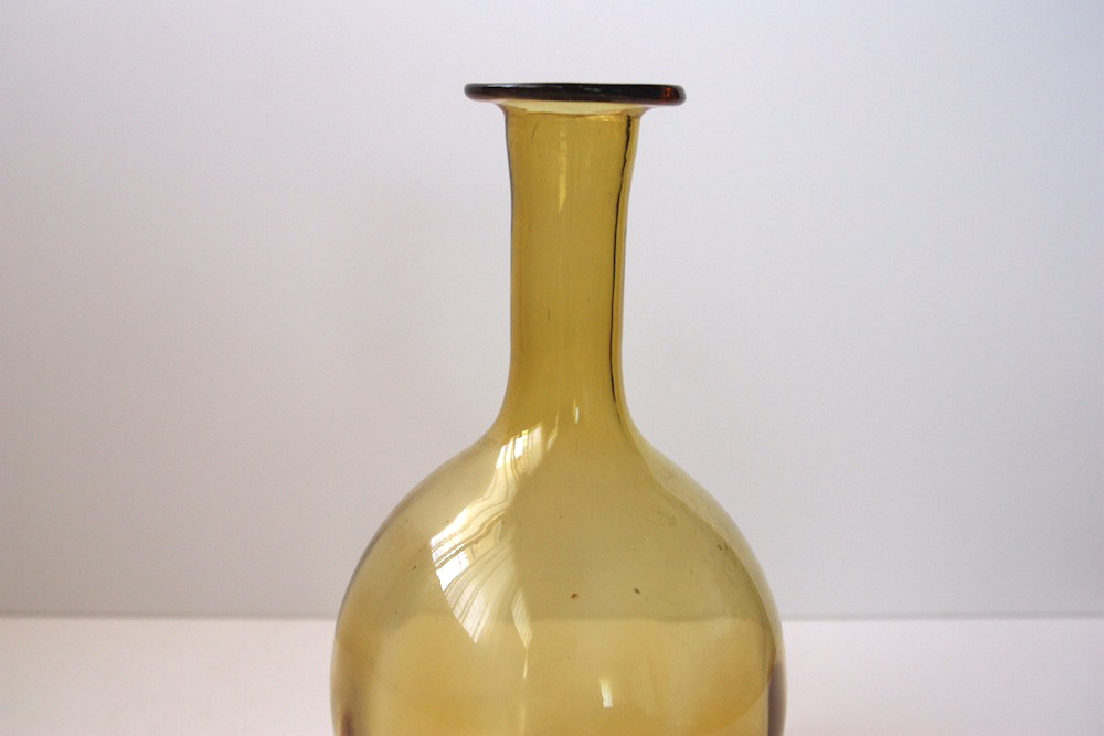 珍しい色の吹きガラスのデキャンタ。白い陶器の器とも、土ものの器とも合性が良い色です。1930年代、イタリア。