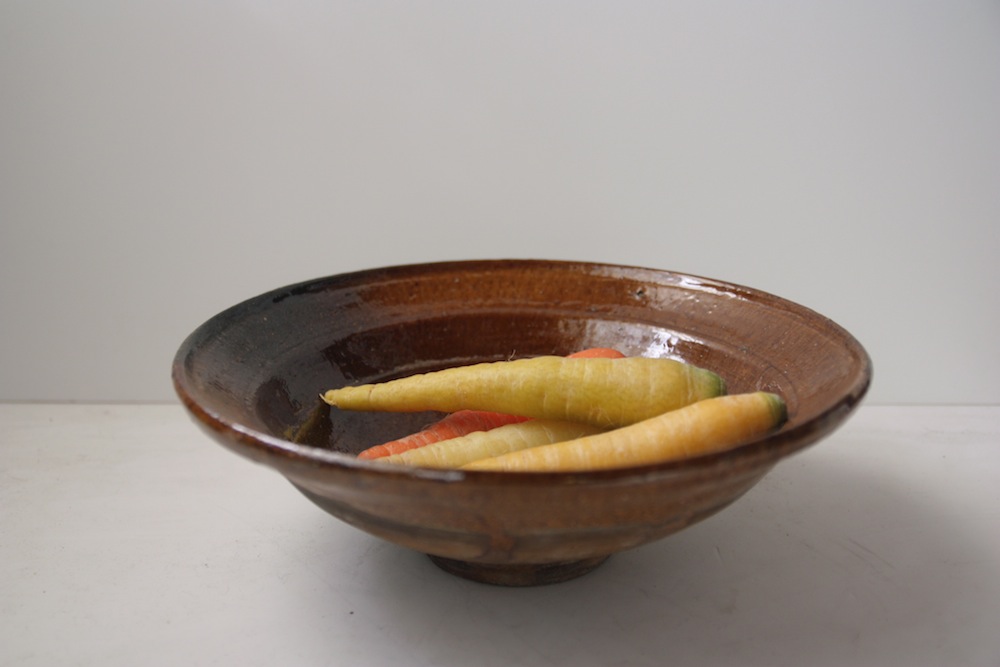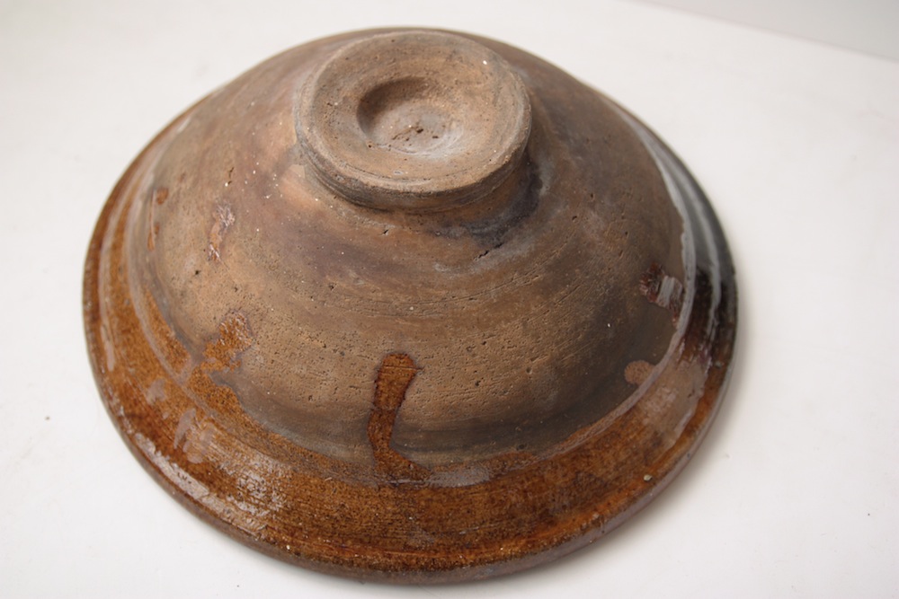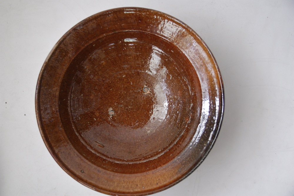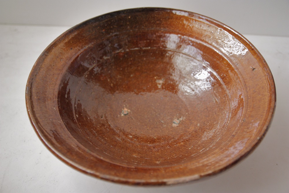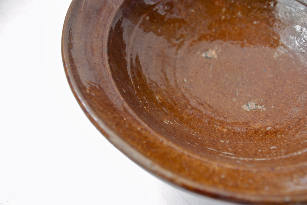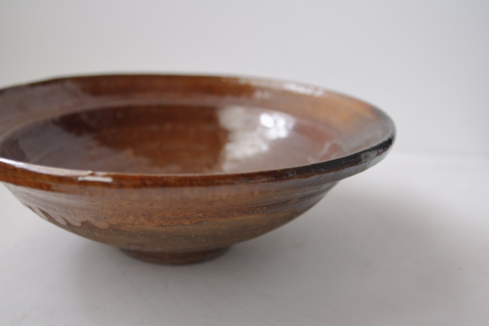 深さのある大きな陶器のボウル。おそらくイタリアのものです。内側には釉がかかっています。料理をざっくりと盛りつけるのに最適。和食にも合うと思います。