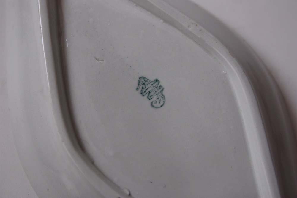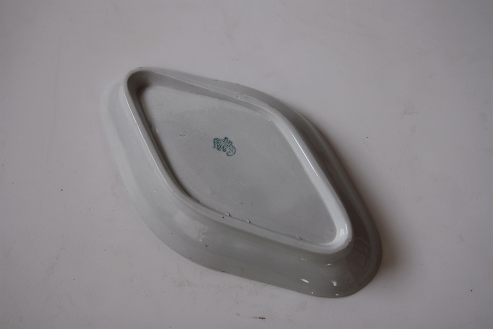 大変珍しいFlorio フロリオ(パレルモ)というシチリア島にあった窯のお皿です。1882年にシチリアの現州都パレルモに創業したフロリオ窯は、20世紀に入ってリチャード ジノリに吸収合併されたそうです。優しいフォルムの陶器のラヴィエ皿です。裏のタツノオトシゴはフロリオ窯のマークです。製造時のホツや細かい傷があります。画像でお確かめください。